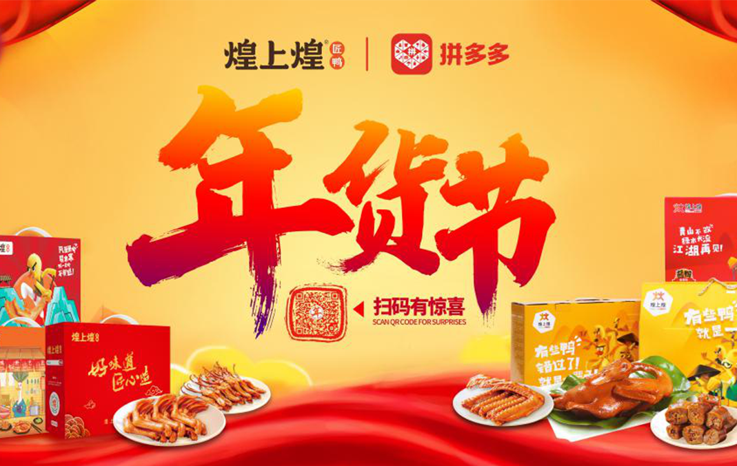 2019年12月1日,煌上煌和拼多多平臺共同打造年貨節,推出新年特別款禮盒,用匠心致敬這一年以來為生活而努力的人。讓回家的人,都能吃煌上煌,過吉祥年。