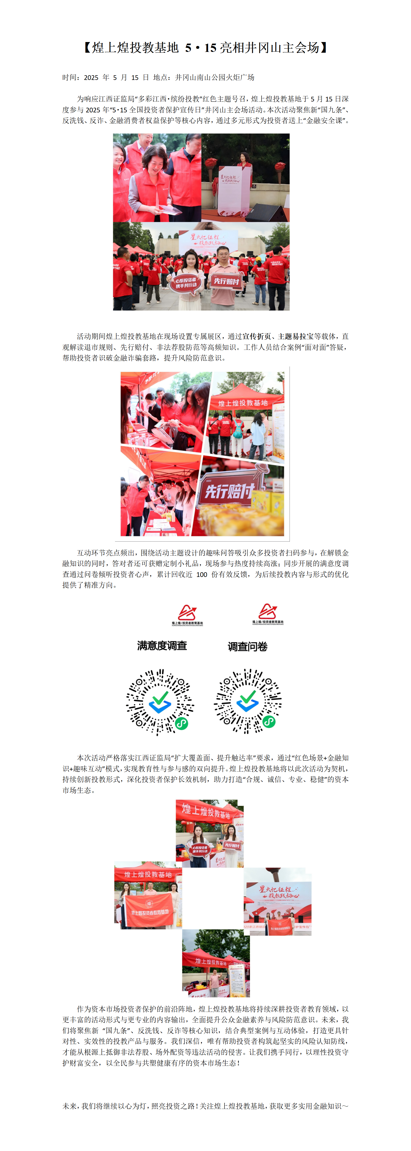 煌上煌投教基地亮相井岡山:紅色賦能投資者保護